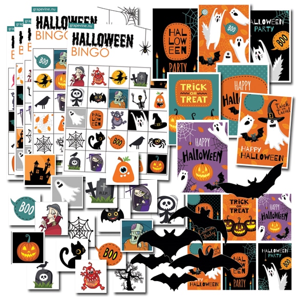 Unser wunderbares Set, das Halloweenstimmung verleiht! Hier gibt es Karten, Etiketten, Bingo, Memory und Fledermausdekorationen! Drucke Sie aus und basteln Sie zu Halloween!